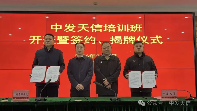 中发天信-江西干部学院培训基地揭牌发表时间:2026-02-07 11:04 革命先辈在井冈山点燃了中国革命的星星之火,开创了艰苦卓绝的伟大创业之路。而今,肩负航空报国使命的中发天信,将创业的根脉深植于这片红色沃土,在精神源头上汲取奋进力量。2月6日,"中发天信干部培训基地"授牌仪式暨在江西干部学院隆重举行。公司常务副总赵宇率全国各分子公司核心团队齐聚革命圣地,开展理想信念教育,在红色沃土中叩问初心。本次培训旨在系统性培养公司分布全国的干部队伍,使其在理想信念的源头接受淬炼与升华。 精神寻根